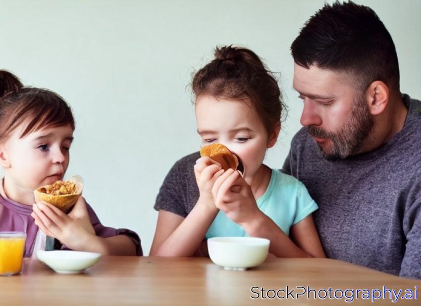 african american appetite appetizing black girl breakfast casual caucasian man childhood daughter delicious domestic life eating emotional family father feed food fruits grumpy healthy home indoors kid lifestyle parent parenthood parenting people porridge portrait pre-adolescent relationship smiling together togetherness young adult yummy-