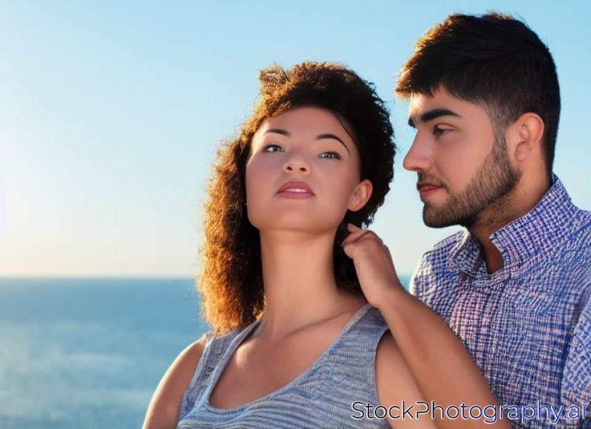 portrait of young couple looking at the horizon