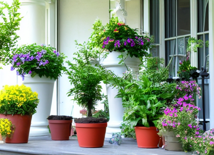 pot plants on mansion house porch summer photo