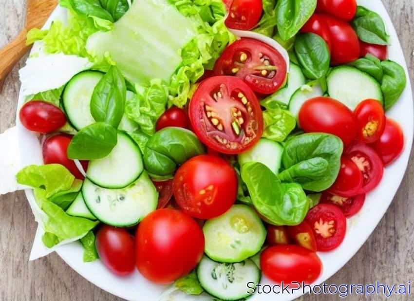 salad of fresh tomatoes, cucumbers, lettuce, olive and cheese