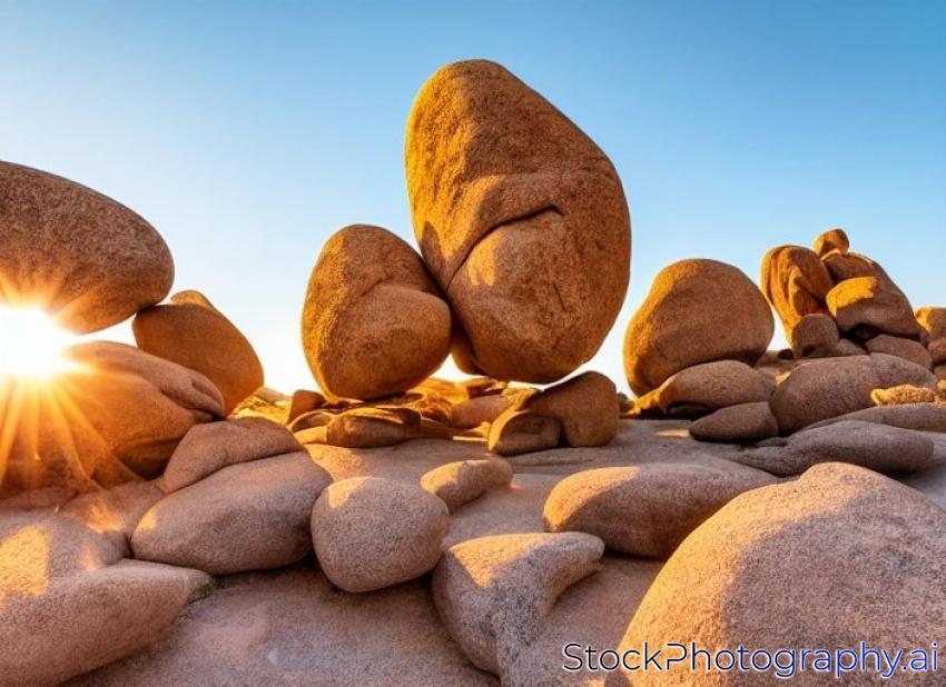 scenic golden rocks in Joshua Tree National Park in sunset