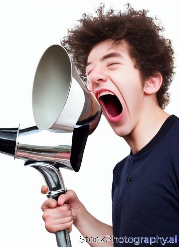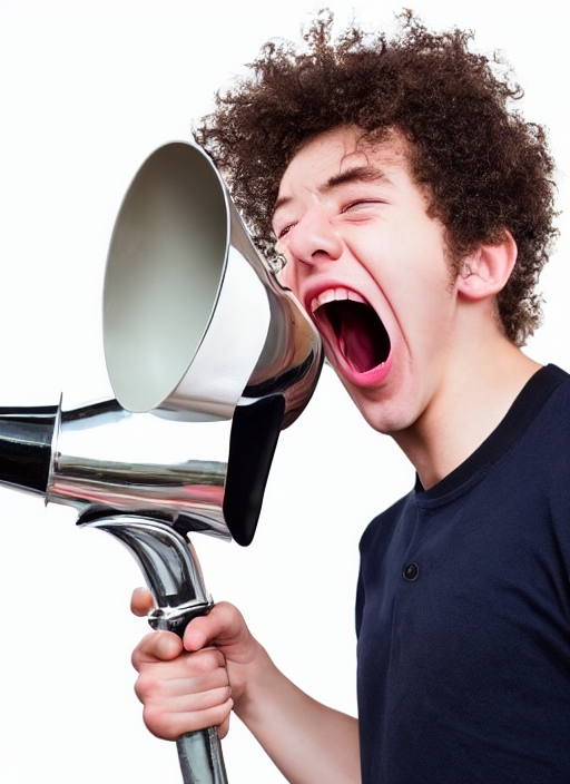 adult agitation announce announcement boy casual caucasian communicate communication emotion energetic enthusiasm excited excitement guy holding individuality loud loudspeaker male man megaphone message mouth news noise noisy one open people person screaming shot shout shouting speaker speaking standing student studio teen teenage teenager white young-