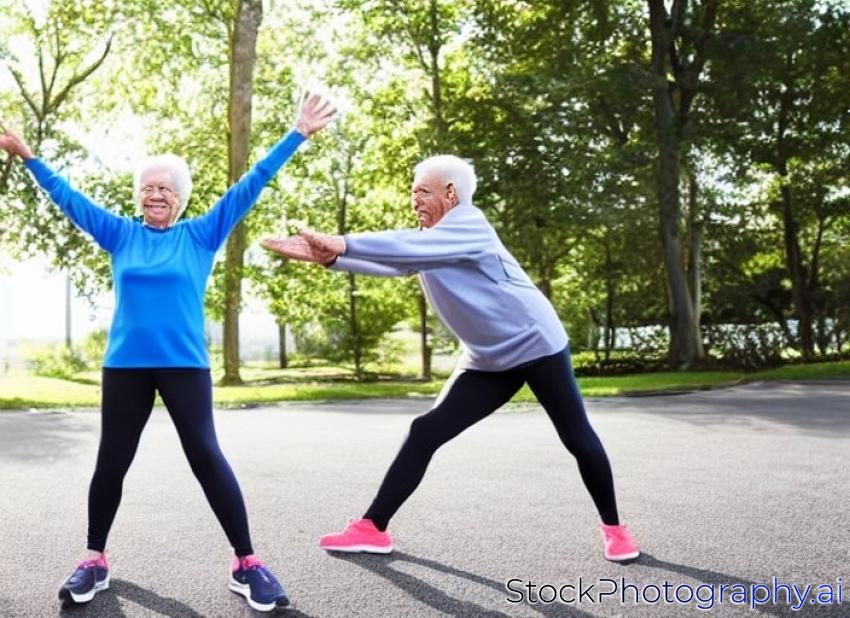 senior couple in jogging gear doing sport and physical exercise outdoors, stretching and gymnastics