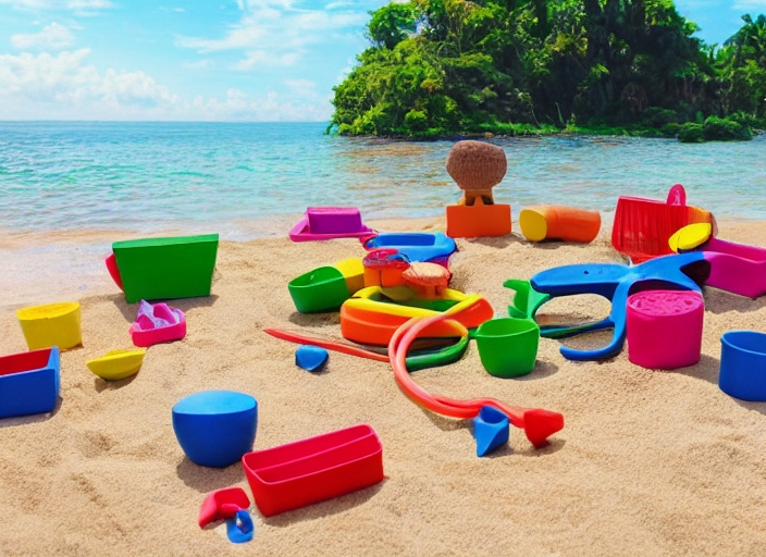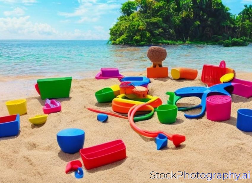 set - children's panama, toys for sand. The concept of vacations, games in kindergarten and fresh air, summer mood