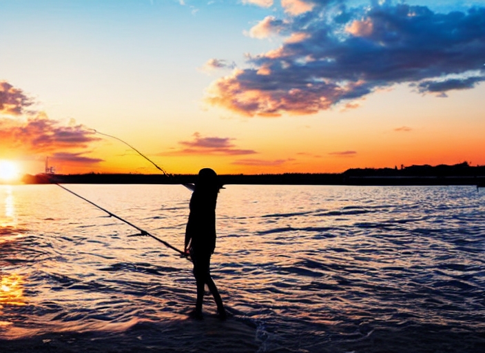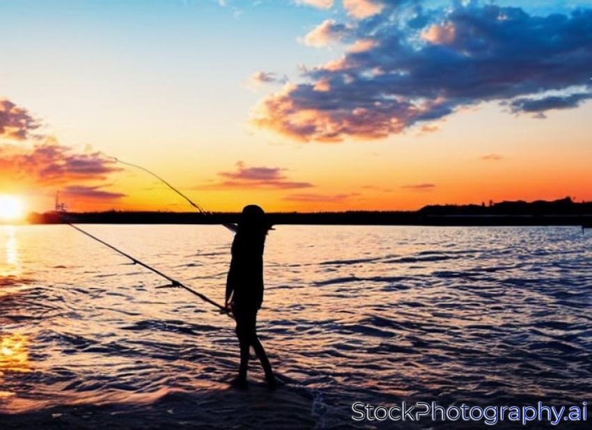 silhouette Bright and beautiful sunset at Pier fishing