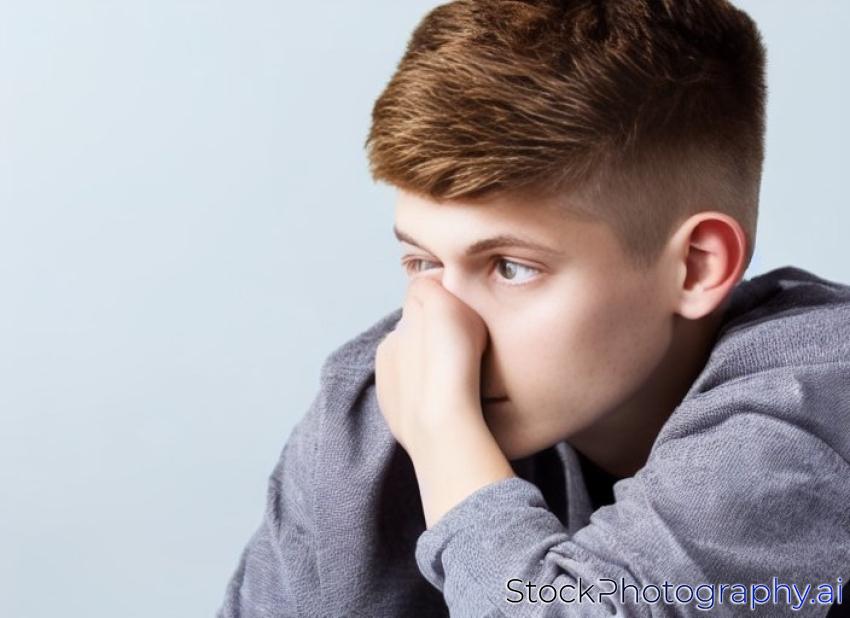 adolescence background behavior blue boy caucasian child childhood concentration concepts confidence confusion contemporary culture cute depression emotions expression eye face feelings head healthy human individuality isolated kid lifestyle looking male masculinity men one pensive people person portrait problems sadness schoolboy serious student teenager thinking view white worried years young youth-