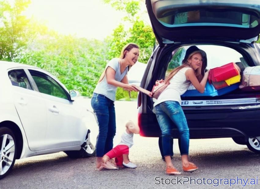 auto automobile bag baggage car cheerful child concept daughter estate family father girl happy hatchback hispanic holidays home insurance kid latin leisure lifestyle luggage man mother outdoors packing parent parking people person personal private property road smiling summer things together tourism transport transportation travel trip trunk vehicle woman young-