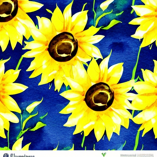 watercolor painting of Yellow , flower , sunflower seamless pattern , on dark background