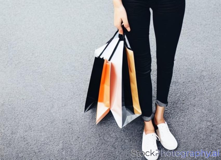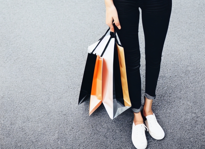 woman wear black jeans holding shopping bag on the ground