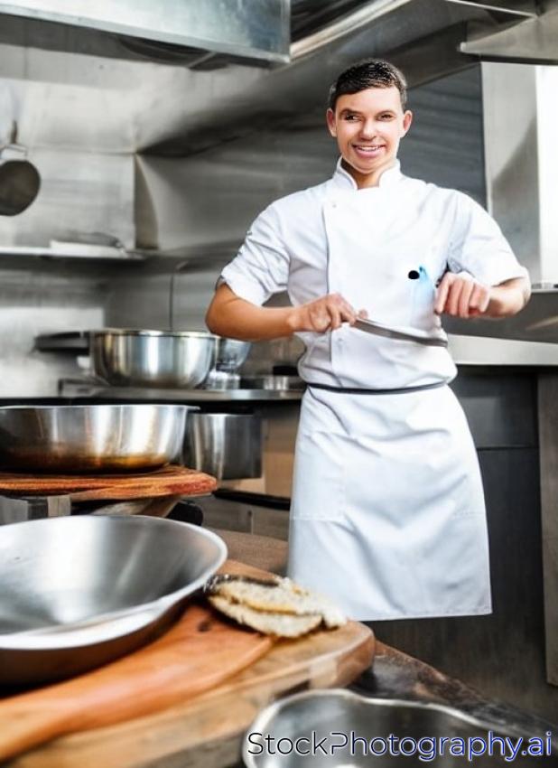 young cook in a kitchen of a restaurant