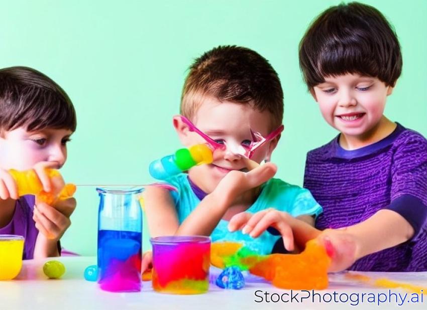Boy and Girl Sibling Playing Homemade Toy Called Slime, Kids having fun and being creative by science experiment.